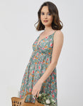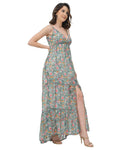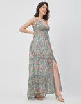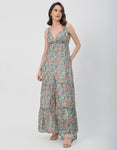 Features: Spaghetti Strap, V-Neck, Tiered Style, Flared Hem, Maxi Length, Relaxed Fit, Lightweight And All Over Printed Pattern.