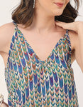 Features: Sleeveless, V-Neck, Asymmetric, Spaghetti Strap, Flared Hem, Lightweight, Beach Style And All Over Printed Pattern.