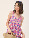 Features: Sleeveless, V-Neck, Asymmetric, Spaghetti Strap, Flared Hem, Lightweight, Beach Style And All Over Printed Pattern.