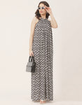 Features: Sleeveless, Halter Neck, Spaghetti Strap, Flared Hem, Long Maxi Length, Resort Style And All Over Printed Pattern.