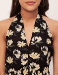 Features: Sleeveless, Halter, Backless, V-Neck, Maxi Length, Lightweight, All Over Printed Pattern.