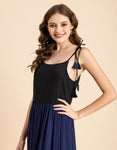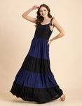 Features: Sleeveless, Round Neck, Flared Hem, Tiered Style, Long Length Lightweight, Available In Beautiful Colors.
