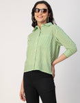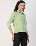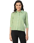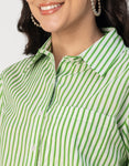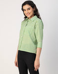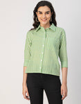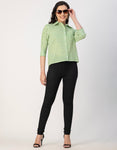Features: Three Quarter Sleeves, Regular Length, Shirt Collar Neckline, Plastic Button, Relaxed Fit Lightweight, All Over Printed Pattern.