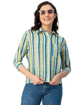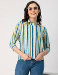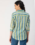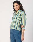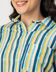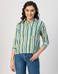 Features: Three Quarter Sleeves, Regular Length, Shirt Collar Neckline, Plastic Button, Relaxed Fit Lightweight, All Over Printed Pattern.