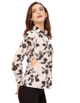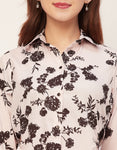 Features: Long Sleeves, Shirt Collar Neckline, Plastic Button, Cut On Side Waist, Regular Length, Regular Fit, Lightweight, All Over Printed Pattern.