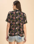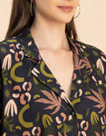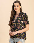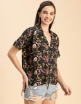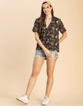 Features: Short Sleeves, Notch Lapel Neckline, Plastic Button, Regular Length, Relaxed Fit, Lightweight, All Over Printed Pattern.