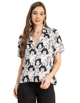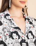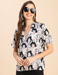 Features: Short Sleeves, Notch Lapel Neckline, Plastic Button, Regular Length, Relaxed Fit, Lightweight, All Over Printed Pattern.