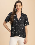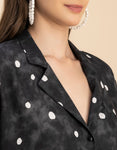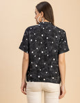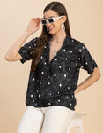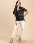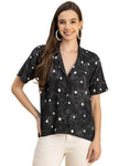 Features: Short Sleeves, Notch Lapel Neckline, Plastic Button, Regular Length, Relaxed Fit, Lightweight, All Over Printed Pattern.