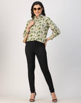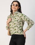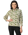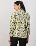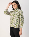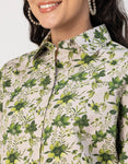 Features: Long Puff Sleeves, Shirt Collar Neck, Plastic Button, Regular Length, Regular Fit, Lightweight, All Over Printed Pattern.