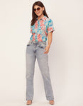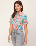 Features: Short Sleeve, Button-Down, Collared, Lightweight And Tie Dye Printed Pattern.