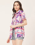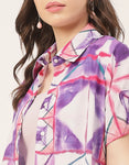 Features: Short Sleeve, Button-Down, Collared, Lightweight And Tie Dye Printed Pattern.