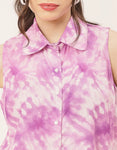 Features: Sleeveless, Button-Down, Collared, Regular Fit, Long Length, Lightweight And Tie Dye Printed Pattern.