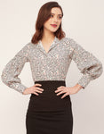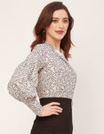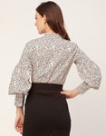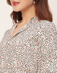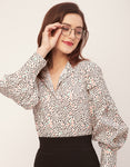 Features: Full Sleeves, Band Collar, Casual Shirt, Button Down Shirt, Regular Fit Shirt, Lightweight With Puff Sleeves And Polka Dot Prints.