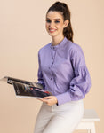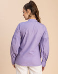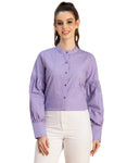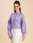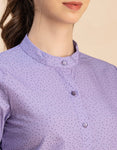 Features: Full Sleeves, Band Collar, Casual Shirt, Button Down Shirt, Regular Fit Shirt, Lightweight With Puff Sleeves And Polka Dot Prints.