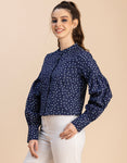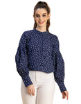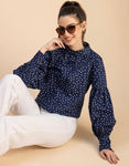Features: Full Sleeves, Band Collar, Casual Shirt, Button Down Shirt, Regular Fit Shirt, Lightweight With Puff Sleeves And Polka Dot Prints.