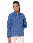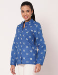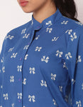 Features: Shirt band collar neck, long sleeves, full length, front button placket, lightweight and all over printed pattern