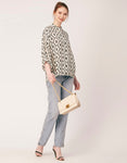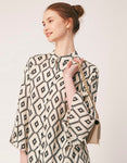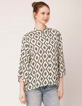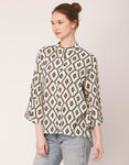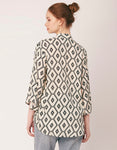 Tags: Oversize Shirt For Women, Summer Tops, Loose Fit Shirt, Mandarin Collar Shirt For Women, Printed Casual Shirt, Button Down Shirt, Long Bell Sleeve Top