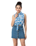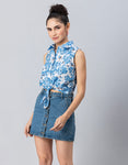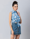 Tags: Crop Shirts For Women, Sleeveless Shirts For Women, Knotting Shirts For Women, Collared Crop Shirts For Women, Western Blouses For Women, Summer Shirts For Women