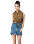 Tags: Crop Shirts For Women, Sleeveless Shirts For Women, Knotting Shirts For Women, Collared Crop Shirts For Women, Western Blouses For Women, Summer Shirts For Women