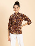 Features: Mandarin Collar, Button Down, Waist Length, Elbow Sleeves, Lightweight And All Over Printed Pattern