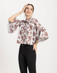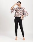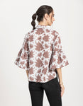 Features: Quarter Bell Sleeves, Collared Neck, Button Down, Pleated, Lightweight And All Over Printed Pattern