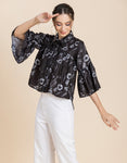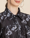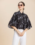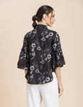 Features: Quarter Bell Sleeves, Collared Neck, Button Down, Pleated, Lightweight And All Over Printed Pattern