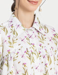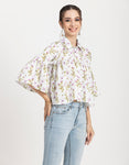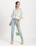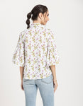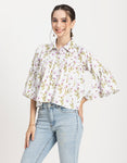 Features: Quarter Bell Sleeves, Collared Neck, Button Down, Pleated, Lightweight And All Over Printed Pattern