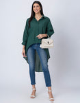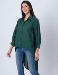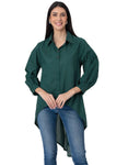 Features: This Solid Asymmetrical Long Shirt Top features long sleeves and a classic collar, adorned with a wooden button, offering a loose fit and lightweight comfort for a chic casual look.
