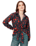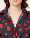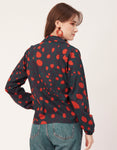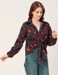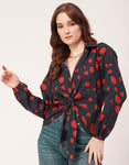 Features: Collared Neck, Long Sleeves, Buttoned Knot Placket, Short Length, Lightweight And All Over Printed Pattern