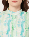 Features: Shirt Band Collar Neck, Long Sleeves, Full Length, Front Button Placket, Lightweight And All Over Printed Pattern