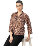 Features: Sleeveless, Tie-Up Neck, Regular Fit, Lightweight, Casual Style, Animal Print Pattern.