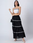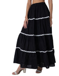 Features: This 3-tiered ankle-length skirt features zigzag lace detailing, an elastic waist for comfort, and a relaxed fit, making it a perfect flowy summer cotton skirt for effortless style.