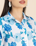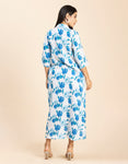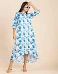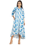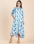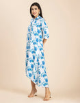 Features: Quarter Sleeves, Button Down, Collared Neck, Calf Length, Lightweight, Asymmetric Hem And All Over Printed Pattern
