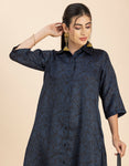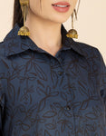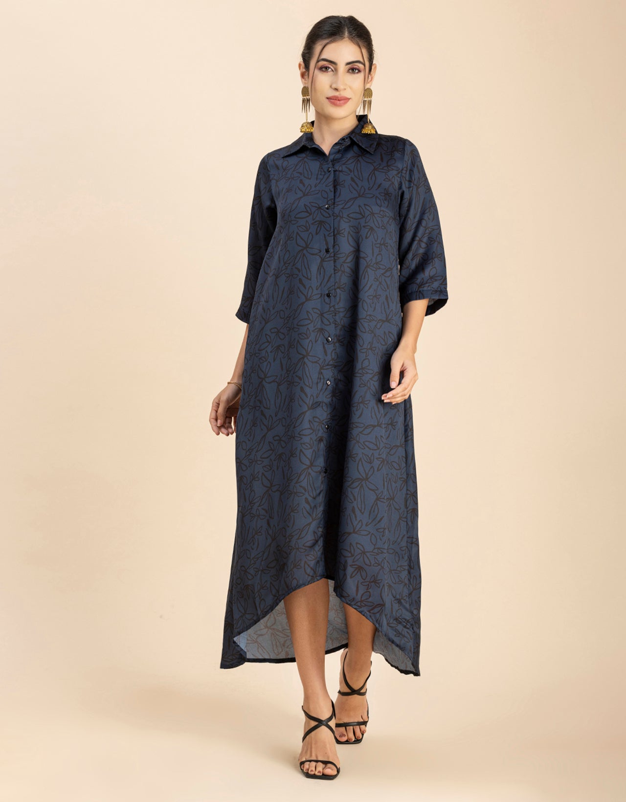 Features: Quarter Sleeves, Button Down, Collared Neck, Calf Length, Lightweight, Asymmetric Hem And All Over Printed Pattern