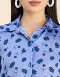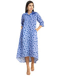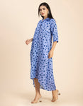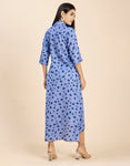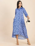 Features: Quarter Sleeves, Button Down, Collared Neck, Calf Length, Lightweight, Asymmetric Hem And All Over Printed Pattern