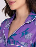 Design & Features: Notch lapel collar, button-down shirt, long sleeves, piping details, 1 patch pocket, elastic waist pajama with 2 side pockets.