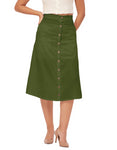 Tags: Solid Skirts For Women, Buttoned Midi Skirt, Elastic Waist Skirt, Solid Midi Skirt
