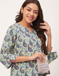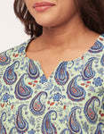 Features: Round Neck With V-Cut, Designer Cut Elbow Sleeve, Elastic Waist Pajama, Comfortable, Breathable, All Over Printed Pattern.