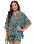 Features: Short Sleeve, V-Neck, Drawstring Waist Kaftan Top, Short Length, Elastic Waist Shorts, Prints On All Over, Soft And Comfortable.
