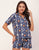 Features: Half Sleeve, V-Neck, Button-Down Shirt With Elastic Waist Shorts, Printed Pattern