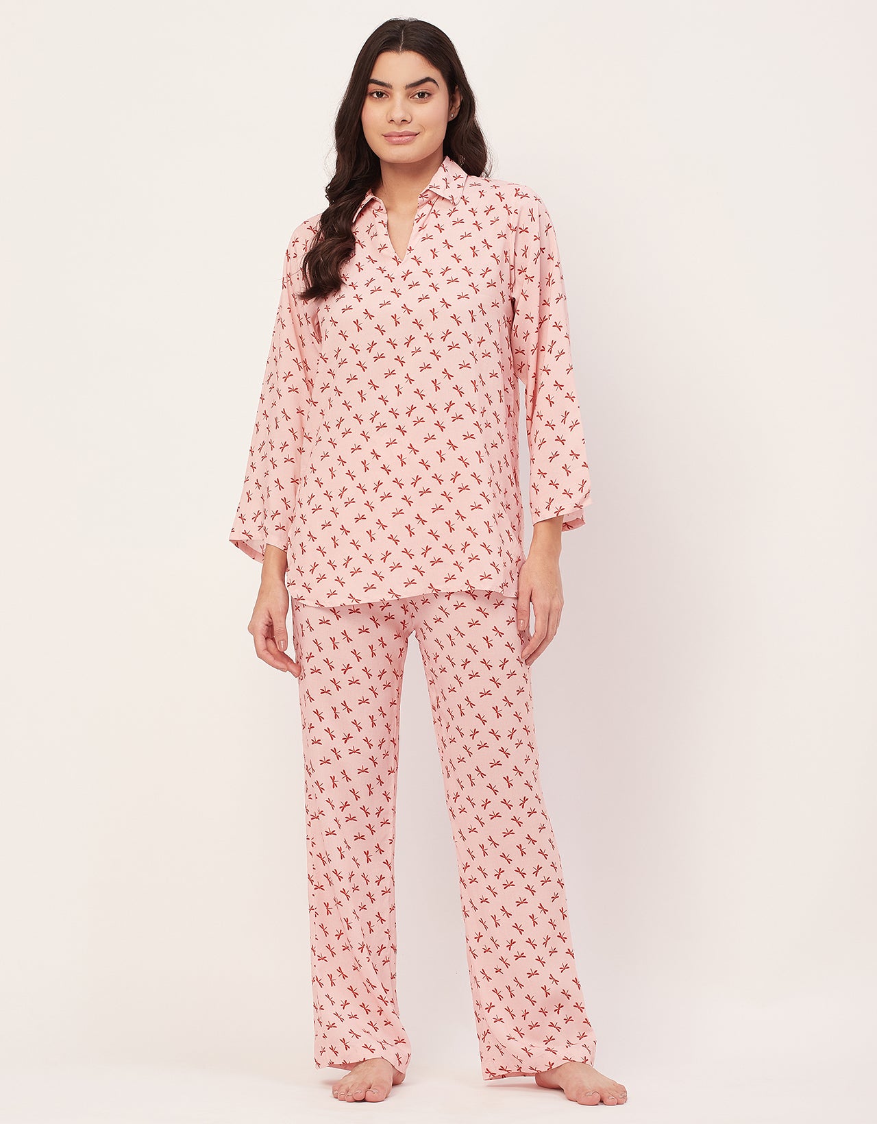 Tags: Printed Night Suit For Women, 2 Pieces Sleepwear Set, Kurta Pajama Coord Set, Elbow Sleeve Pajamas Set, Printed Night Suit For Women, Two Piece Sleepwear