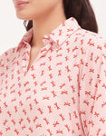 Features: 3/4Th Sleeve, Collared, Loose Fit, Tunic Length Top, Elastic Waist Pajama, All Over Printed Pattern.