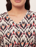Features: V-Neck, Drawstring Waist, Short Sleeve, Loose Fit, Mid Calf Length, Printed Pattern On All Over.