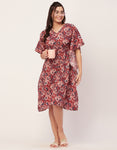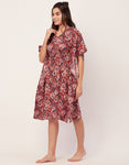 Features: V-Neck, Drawstring Waist, Short Sleeve, Loose Fit, Mid Calf Length, Printed Pattern On All Over.