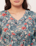 Features: V-Neck, Drawstring Waist, Short Sleeve, Loose Fit, Mid Calf Length, Printed Pattern On All Over.