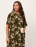 Features: Soft Touch Fabric, Round Neck, Tie Knot Neck With Keyhole, Short Sleeves, Maxi Length, Side Slits, Printed All Over.
