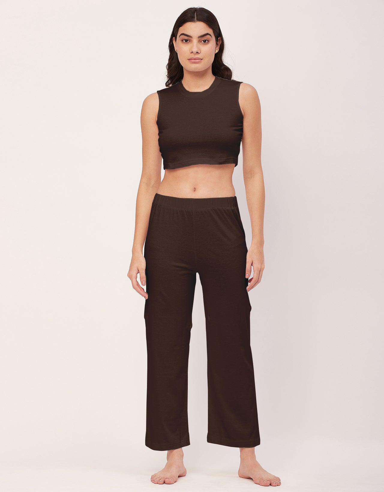 Tags: Two Piece Nightwear Set, Crop Top Pajama Set, Solid Color Night Suit, Cotton Jersey Nightsuits For Women, Solid Pajama Pant Set For Women, 2 Piece Outfits