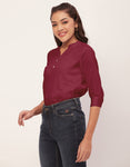 Features: Mandarin Collar, V Neck, 3/4Th Sleeve, Roll-Up Style, Short Length, Lightweight And Solid Pattern