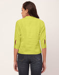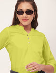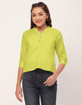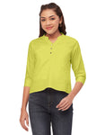 Features: Mandarin Collar, V Neck, 3/4Th Sleeve, Roll-Up Style, Short Length, Lightweight And Solid Pattern