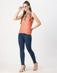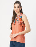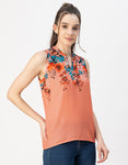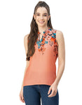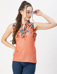 Features: Sleeveless, Mandarin Collar, Regular Length, Regular Fit, Fabric Button, Lightweight, All Over Printed Pattern.